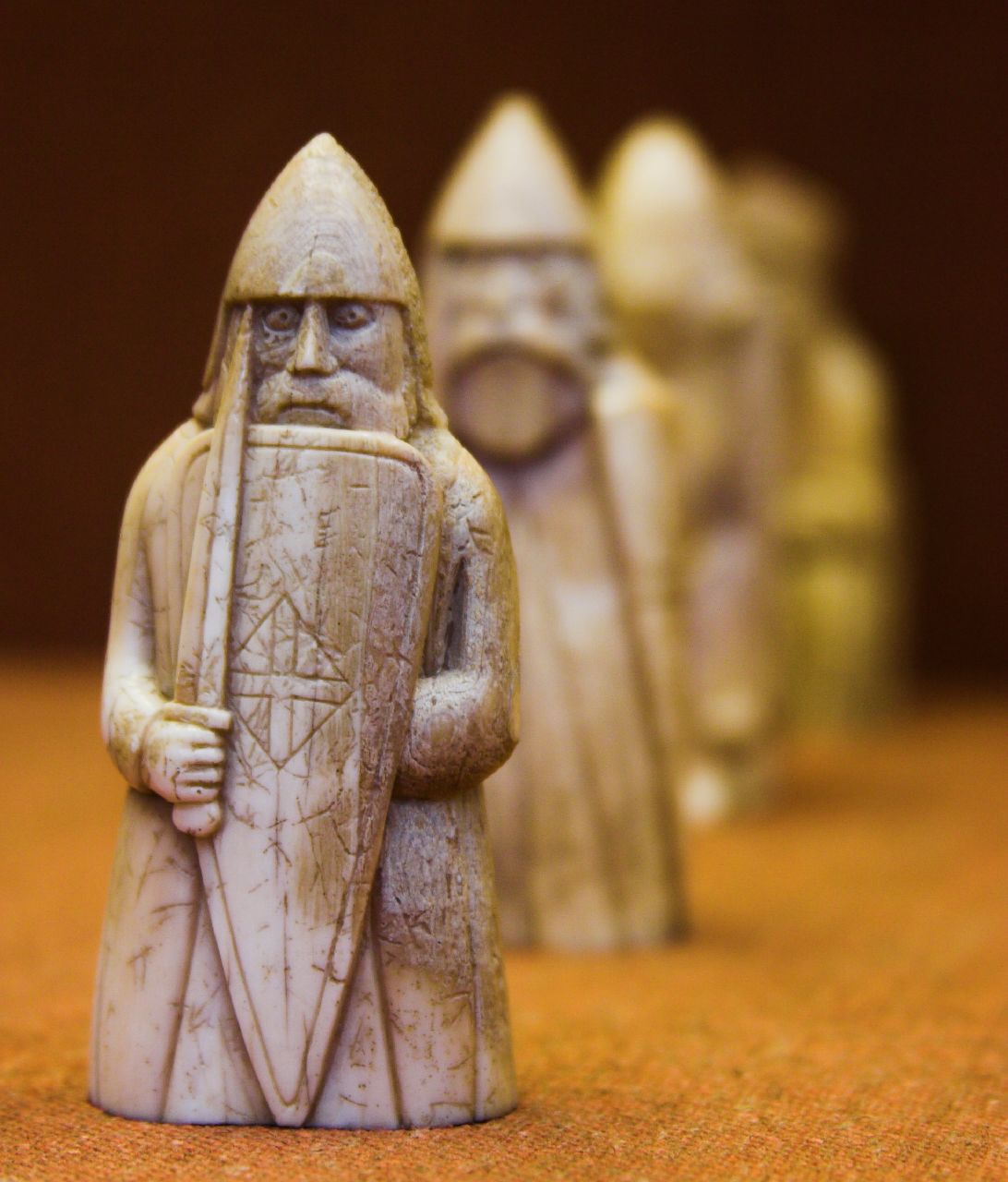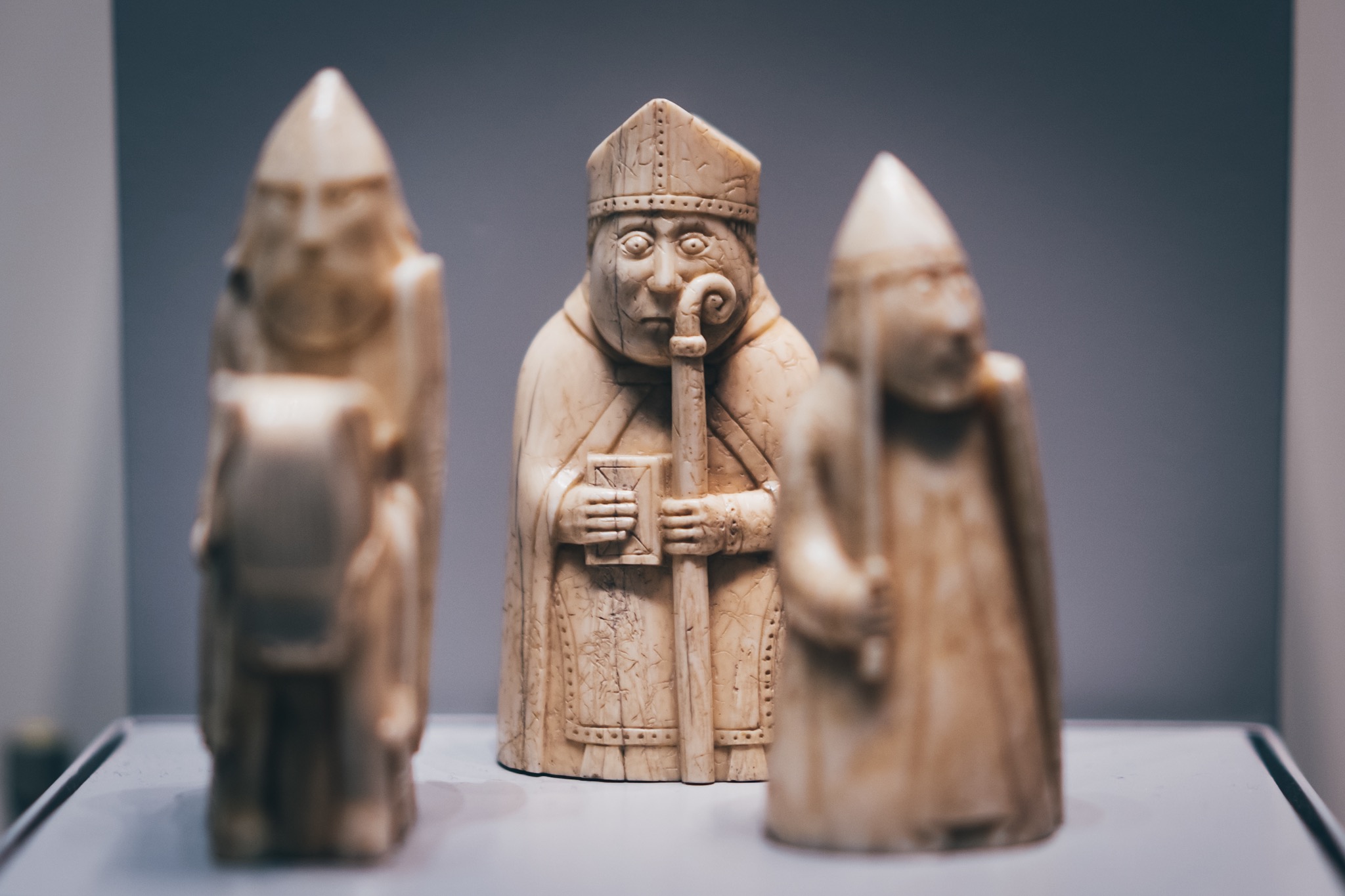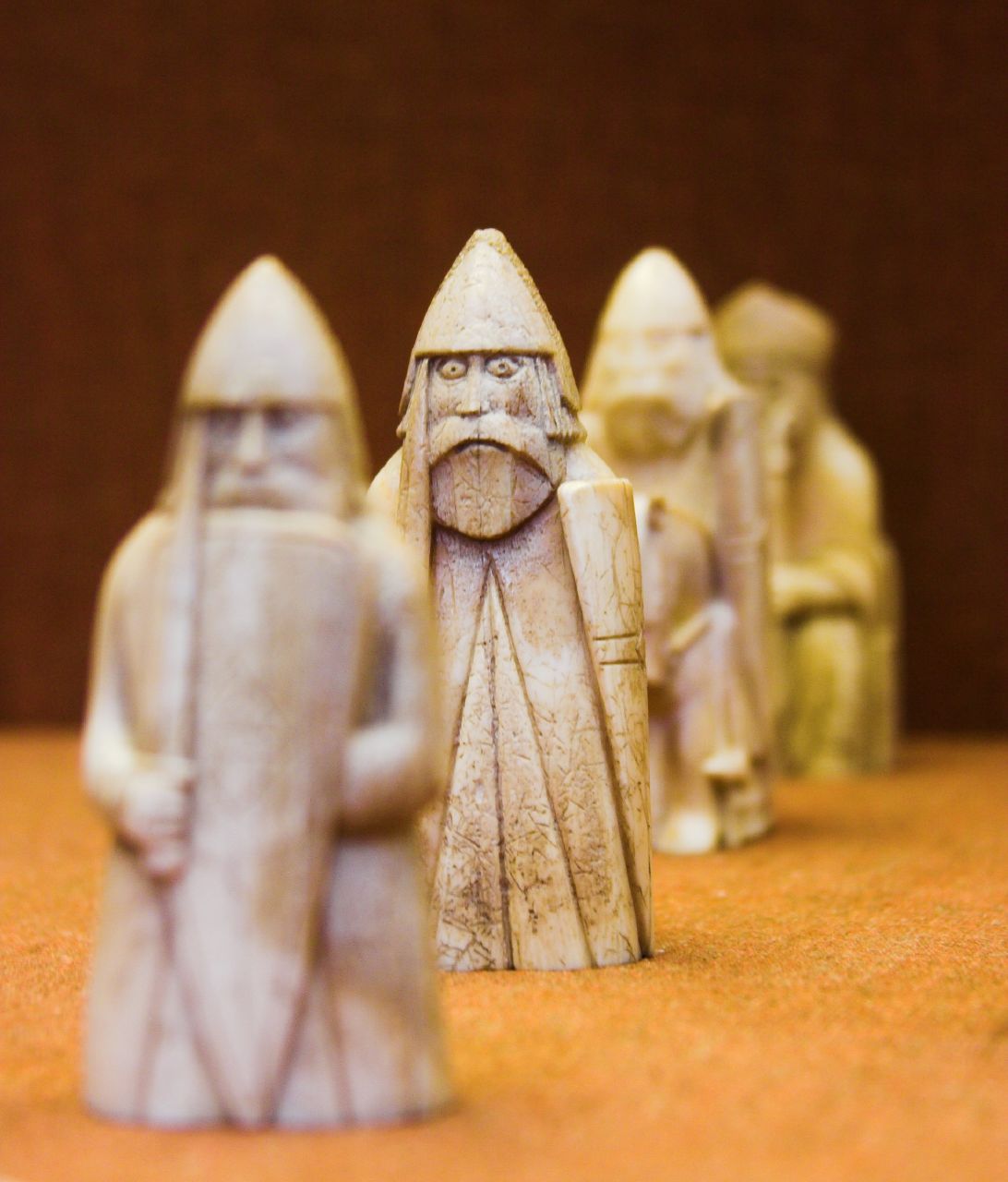 The Lewis Chessmen are a group of intricately carved 12th-century chess pieces made from walrus ivory and whale tooth, discovered on the Isle of Lewis in Scotland. Likely crafted in Norway, they offer a fascinating glimpse into medieval life and artistry. Today, they are among the most famous treasures of the British Museum.