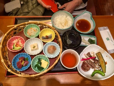 A trip to Japan is not complete without staying at a traditional Japanese guest house, called ryokan. You sleep in a tatami-matted room, you were a traditional yukata and a special dinner is brought to you in your room. The place we stayed also had a nice onsen with great views on the mountains.