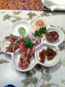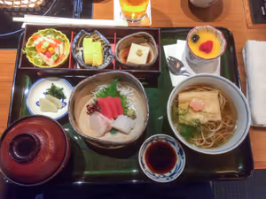 A trip to Japan is not complete without staying at a traditional Japanese guest house, called ryokan. You sleep in a tatami-matted room, you were a traditional yukata and a special dinner is brought to you in your room. The place we stayed also had a nice onsen with great views on the mountains.